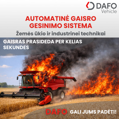 DAFO automatinės gaisro gesinimo sistemos – patikimas sprendimas miško, statybinei, krovos ir žemės ūkio technikai. Sunkiasvorė technika dirba aukštos temperatūros, degių skysčių ir dulkių aplinkoje, todėl gaisro rizika yra itin didelė.